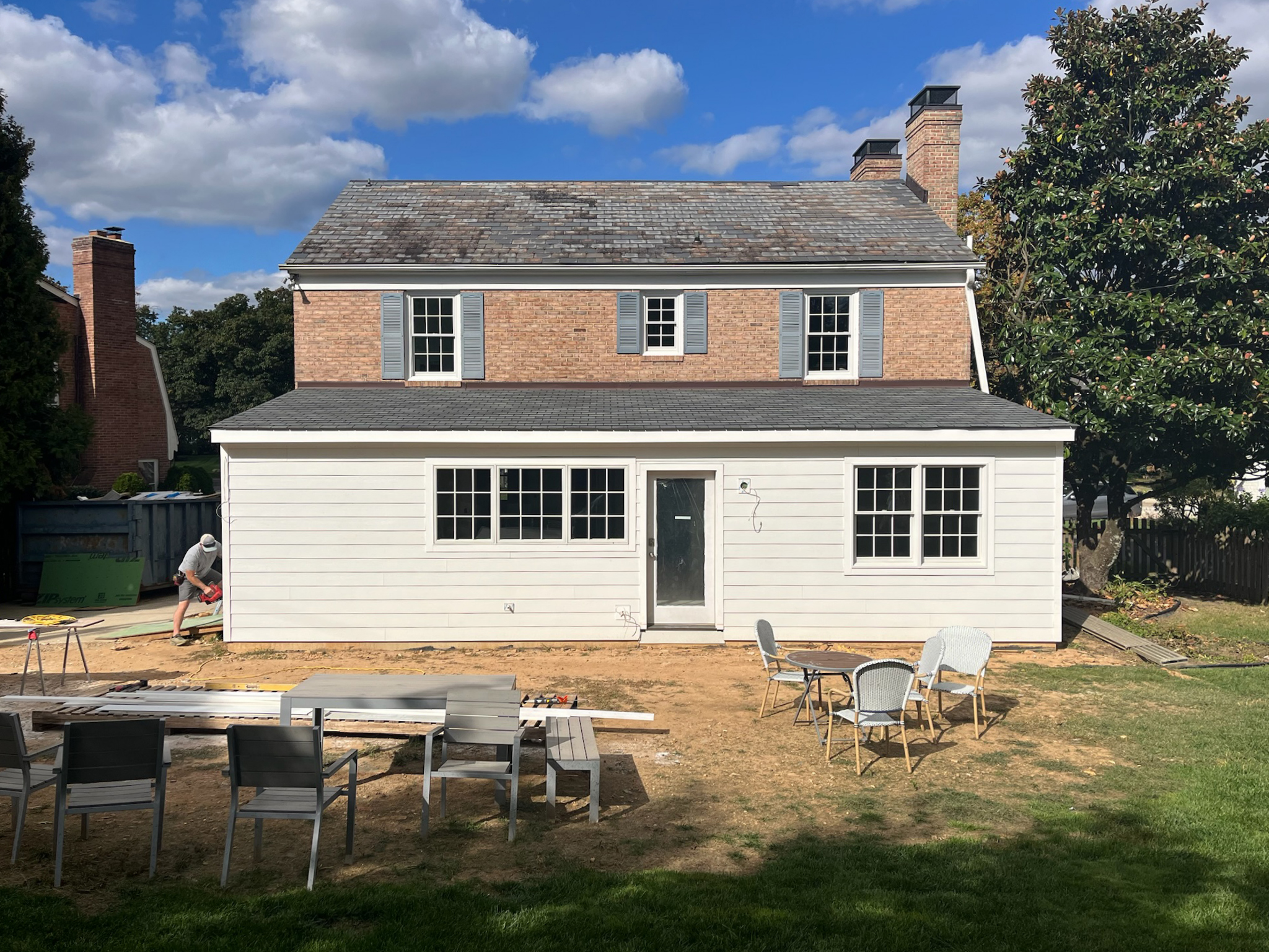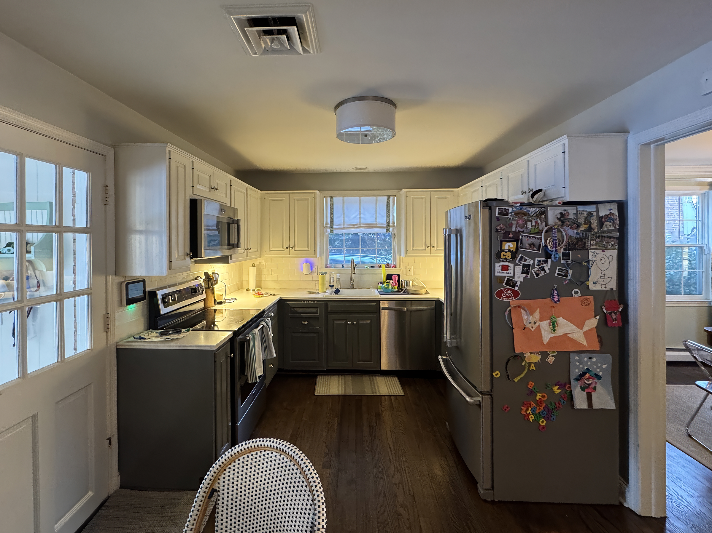 The clients liked “the way their house lived,” but felt cramped in small kitchen and family room. They often used the dining room as a home office and lacked closet and mudroom space. The addition expanded the kitchen, improved the entry sequence with a new mudroom, and created a new office space. The design drawing set helped navigate the city permitting process and seamlessly coordinate with the general contractor.