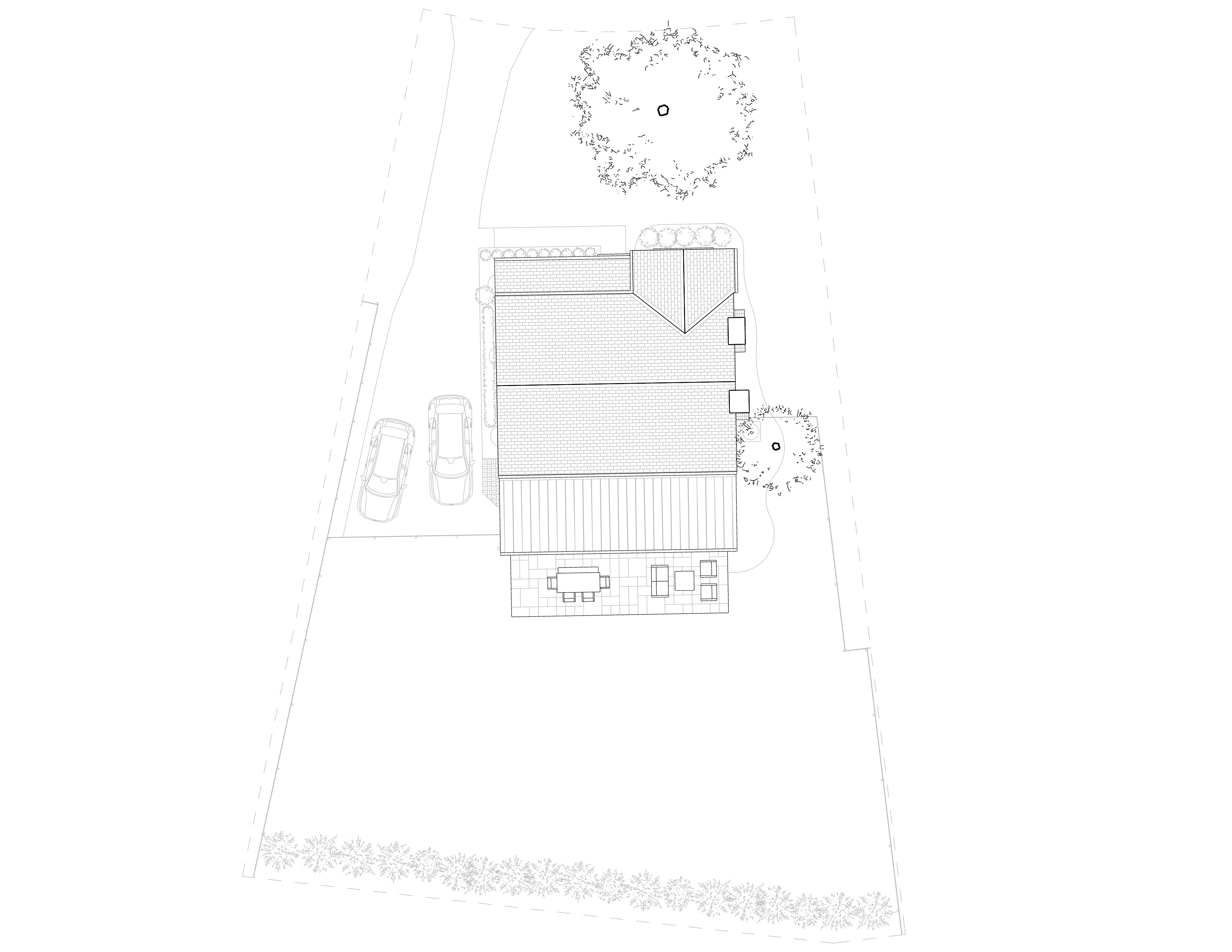 This 12’x10’ utility building in Hancock, NH houses interior storage, exterior wood storage, and an outdoor shower. It features a custom wall assembly using hemlock bark as siding, which is a reimagination of a technique used in the region during the turn of the last century.